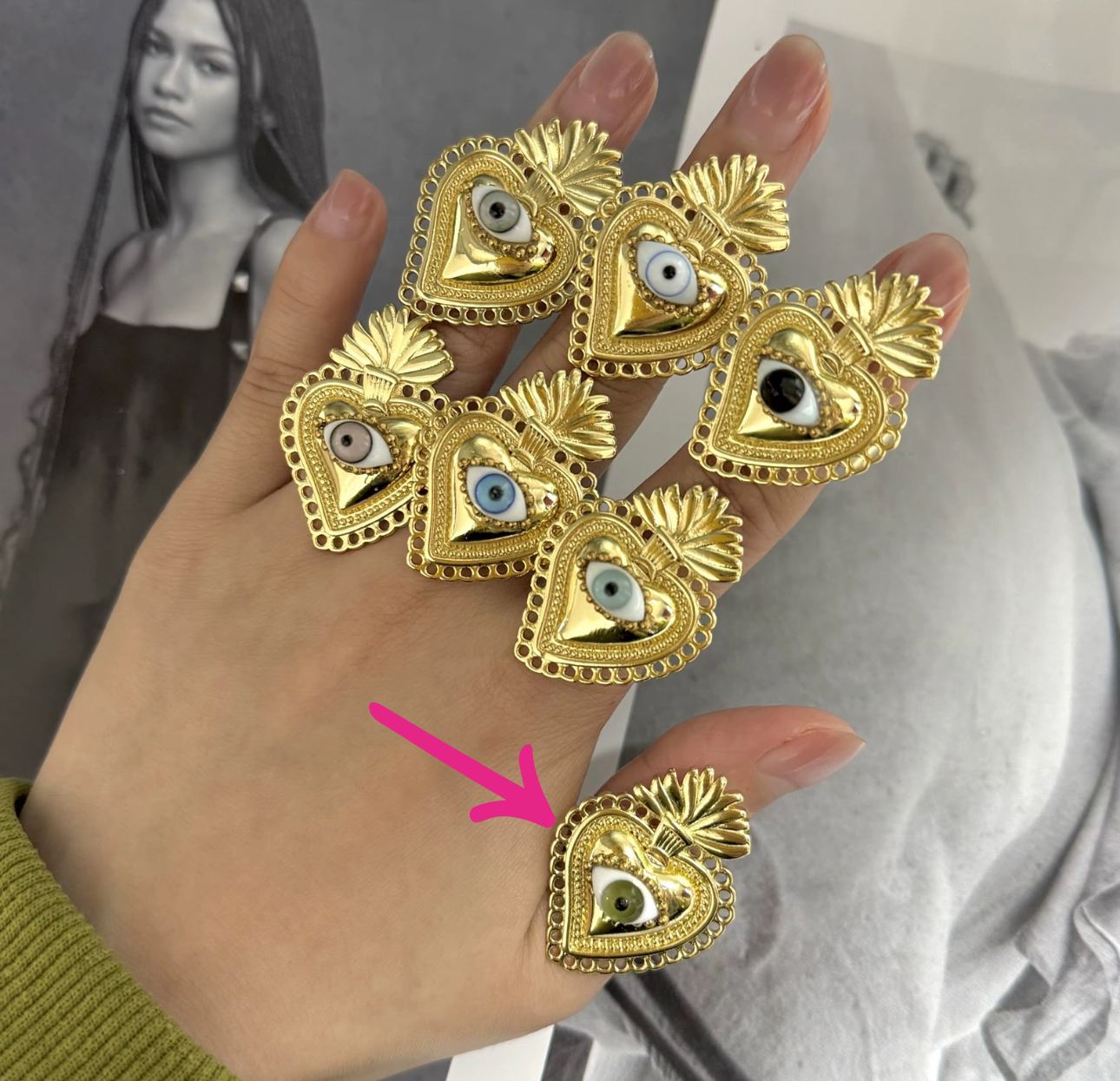 Anillo corazón sagrado ojo cristal